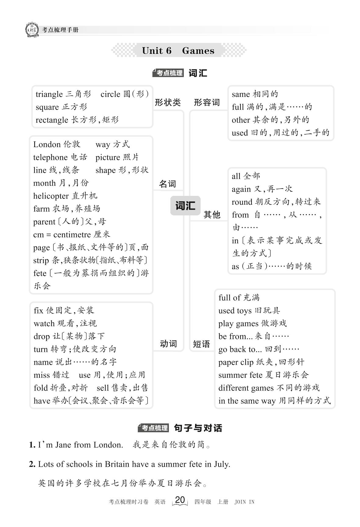 2023上册四年级英语剑桥版 考点梳理手册——Unit 6 Games