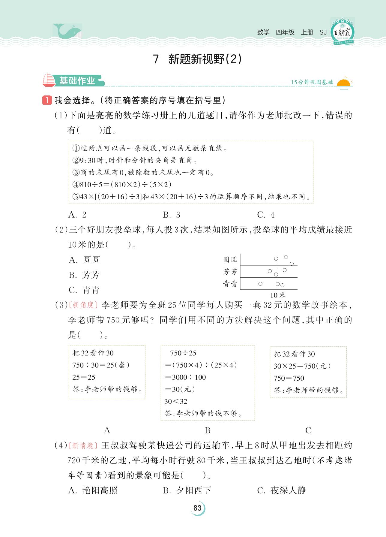 2023上册四年级数学苏教版 第九单元 整理与复习——7 新题新视野(2)