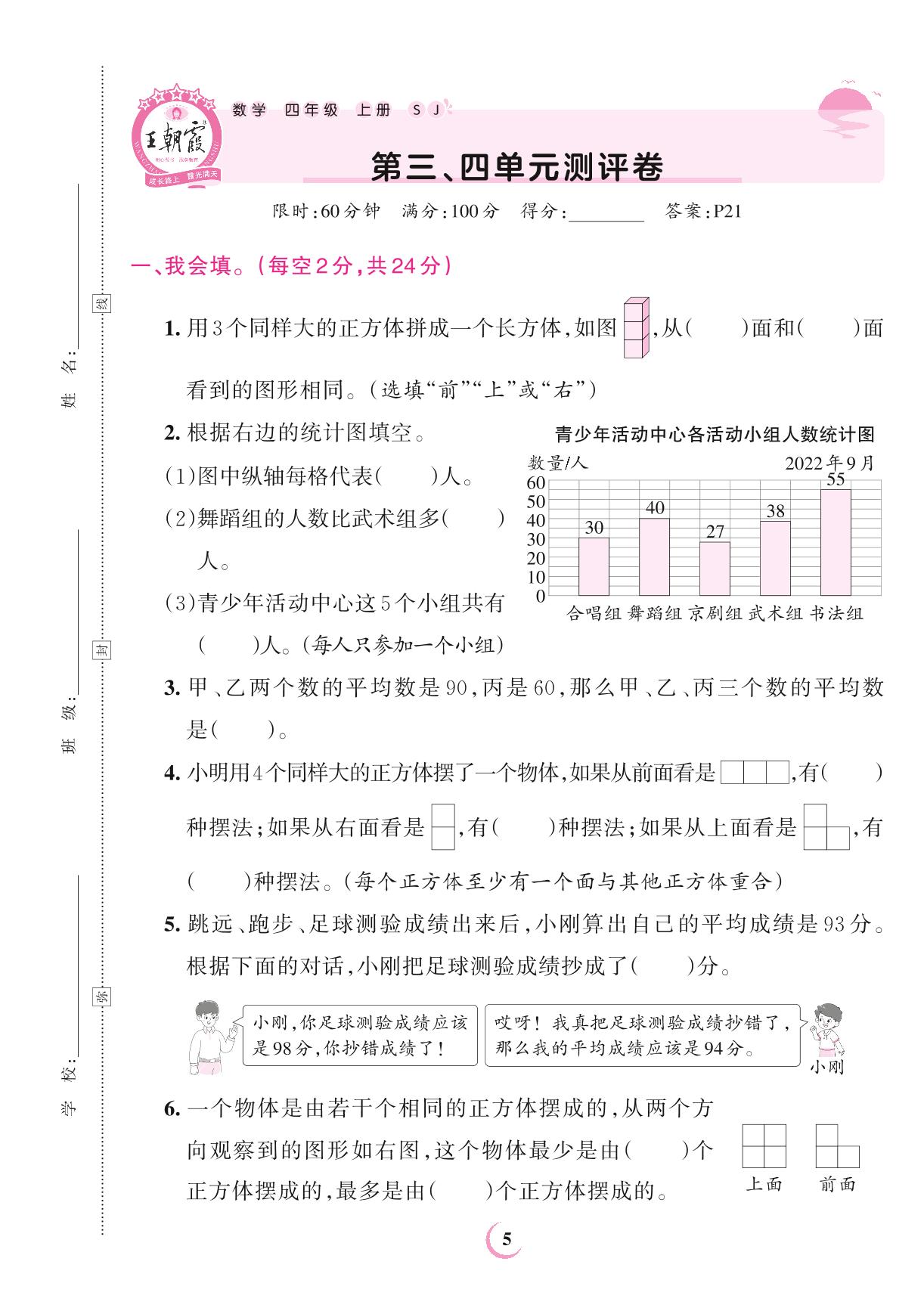 2023上册四年级数学苏教版 第三、四单元测评卷