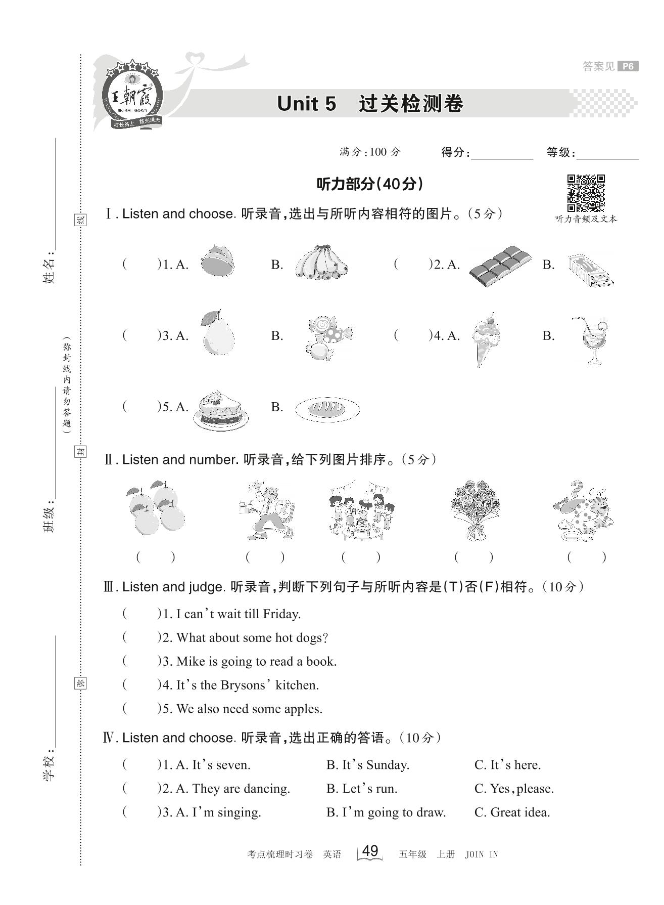 2023上册五年级英语剑桥版 Unit 5 过关检测卷
