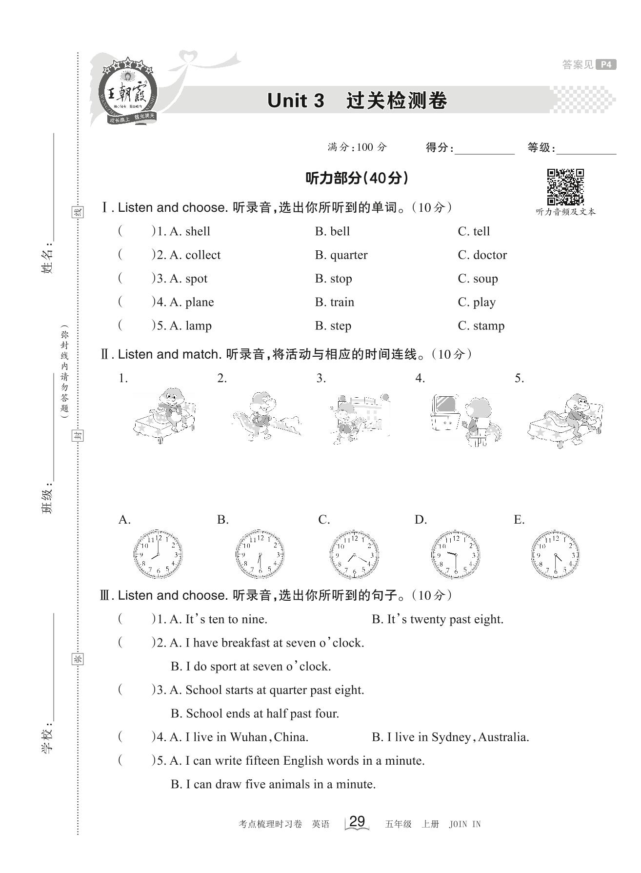 2023上册五年级英语剑桥版 Unit 3 过关检测卷