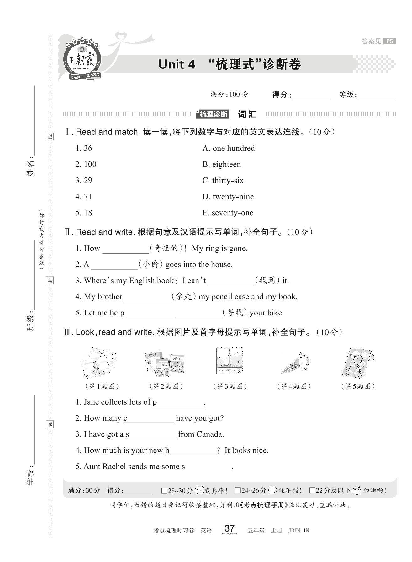 2023上册五年级英语剑桥版 Unit 4 “梳理式”诊断卷