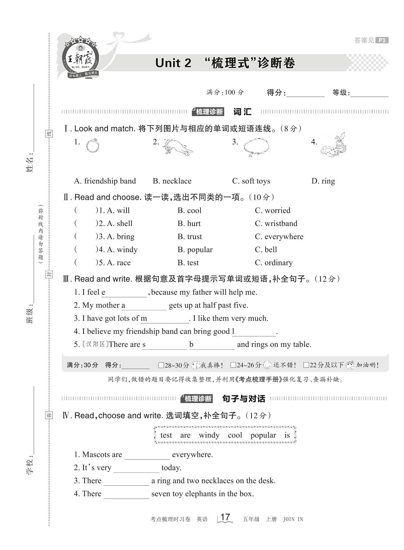 2023上册五年级英语剑桥版 Unit 2 “梳理式”诊断卷