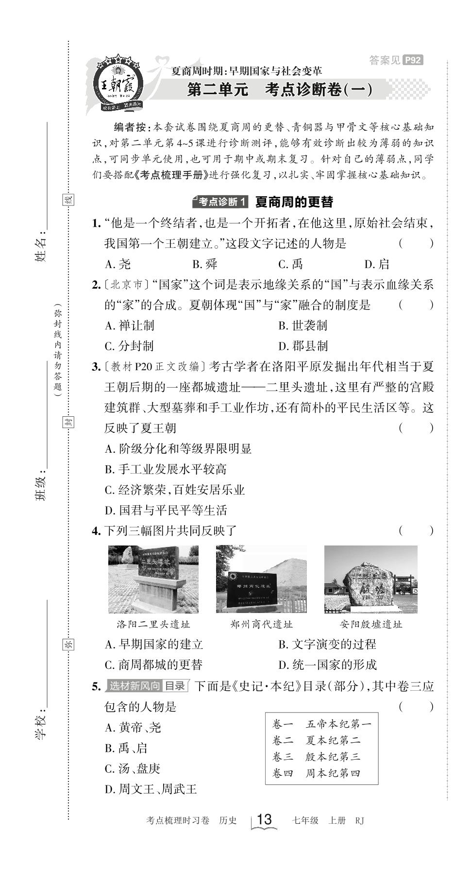 七年级历史人教版上册单元卷