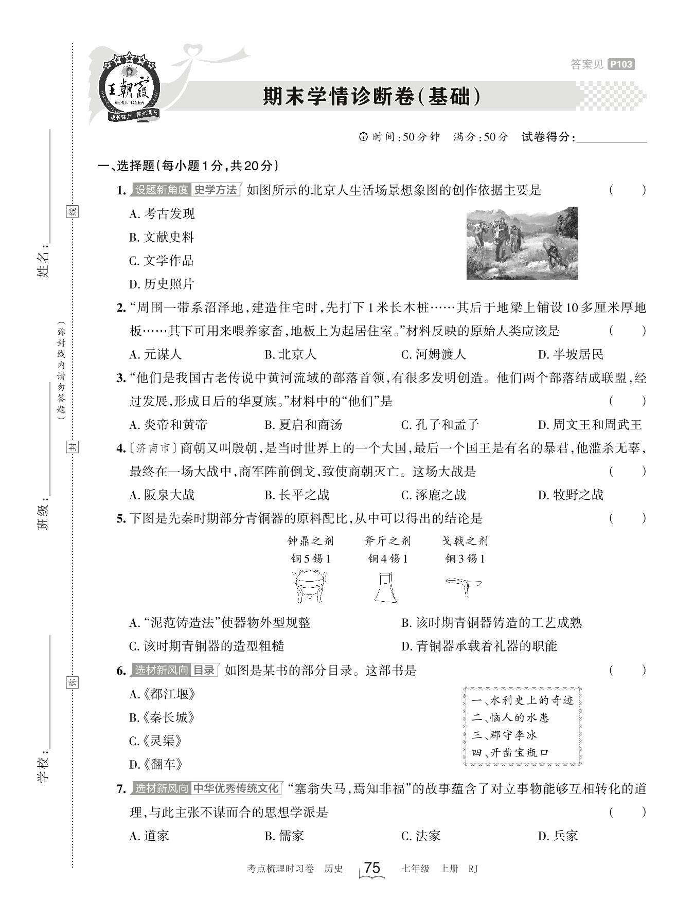 2023上册七年级历史人教版 期末学情诊断卷(基础)