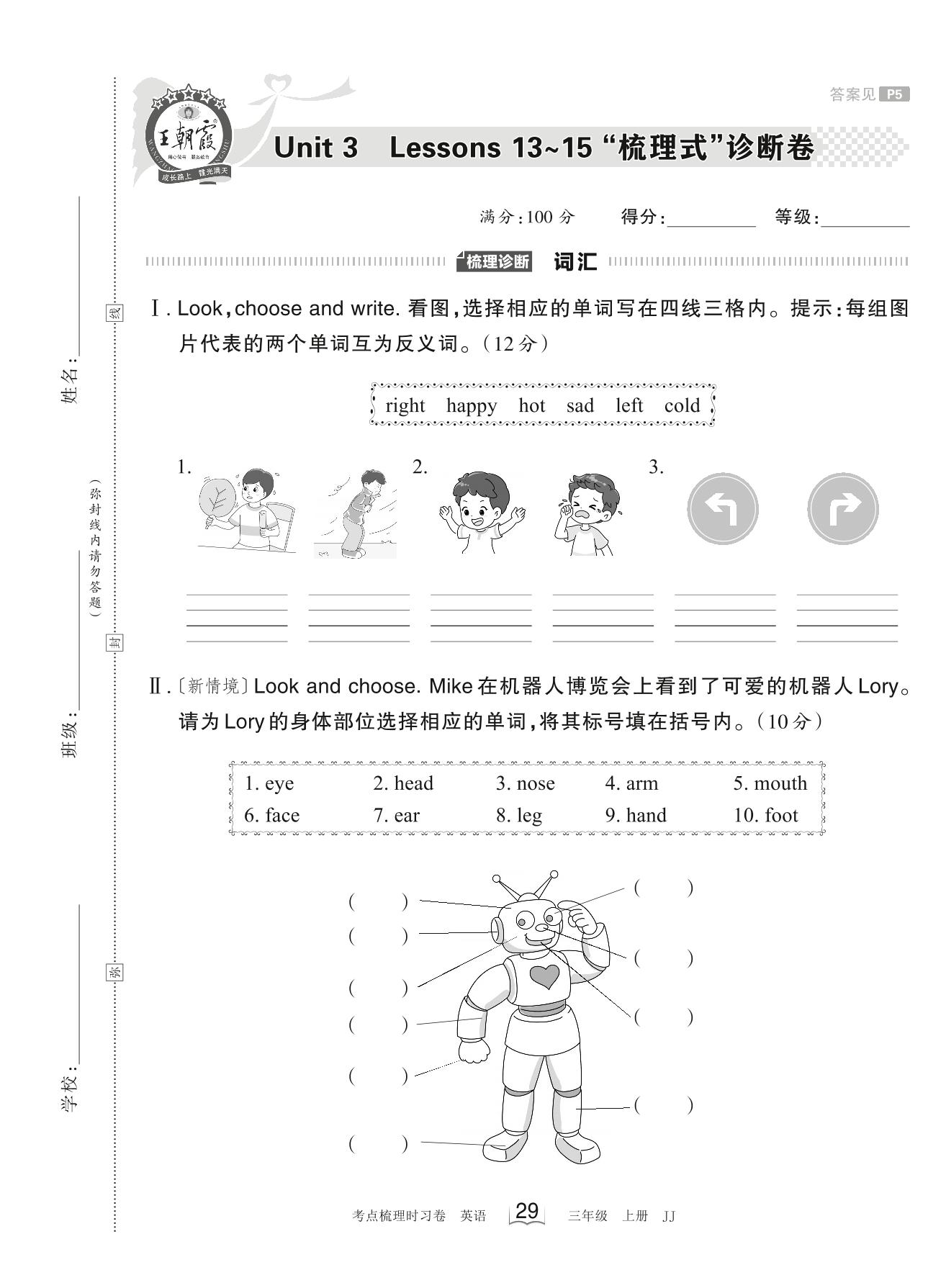 2023上册三年级英语冀教版 Unit 3 Lessons 13~15 “梳理式”诊断卷