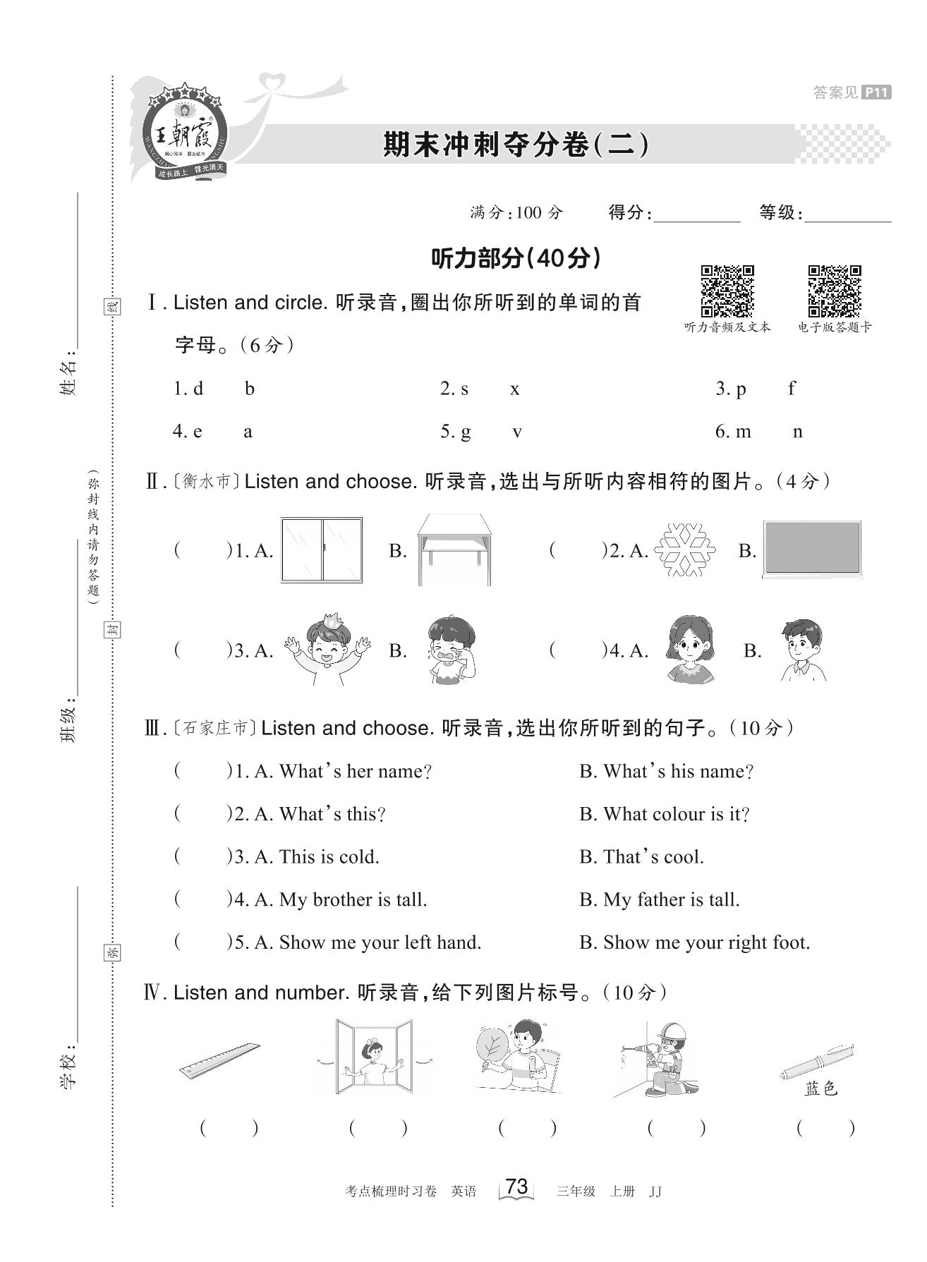 2023上册三年级英语冀教版 期末冲刺夺分卷(二)