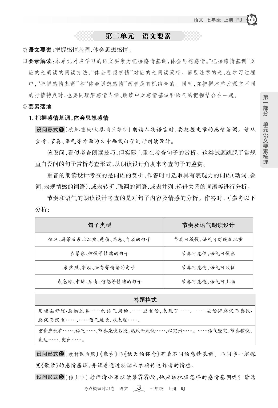 2023上册七年级语文人教版 考点梳理手册——第二单元 语文要素