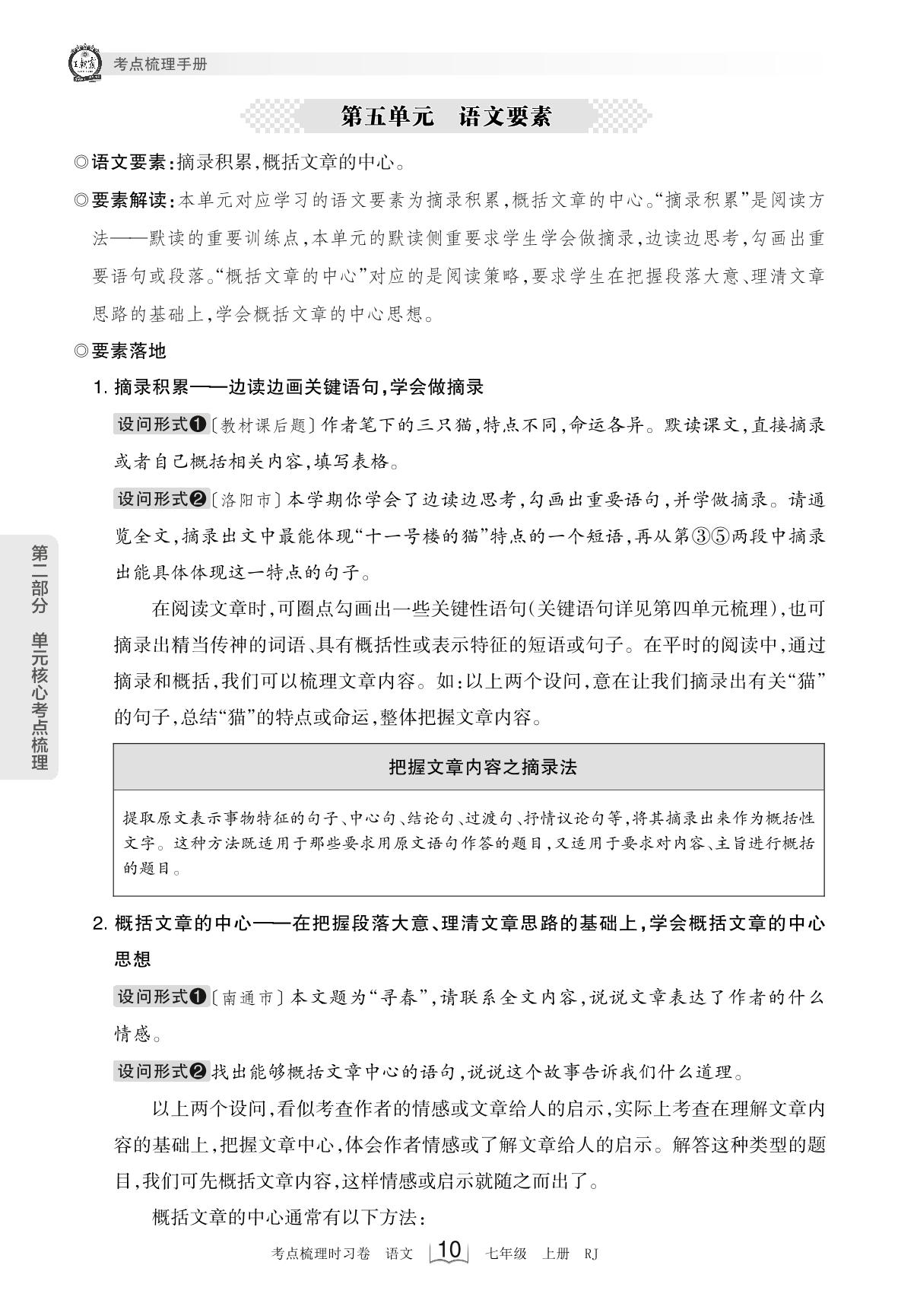 2023上册七年级语文人教版 考点梳理手册——第五单元 语文要素
