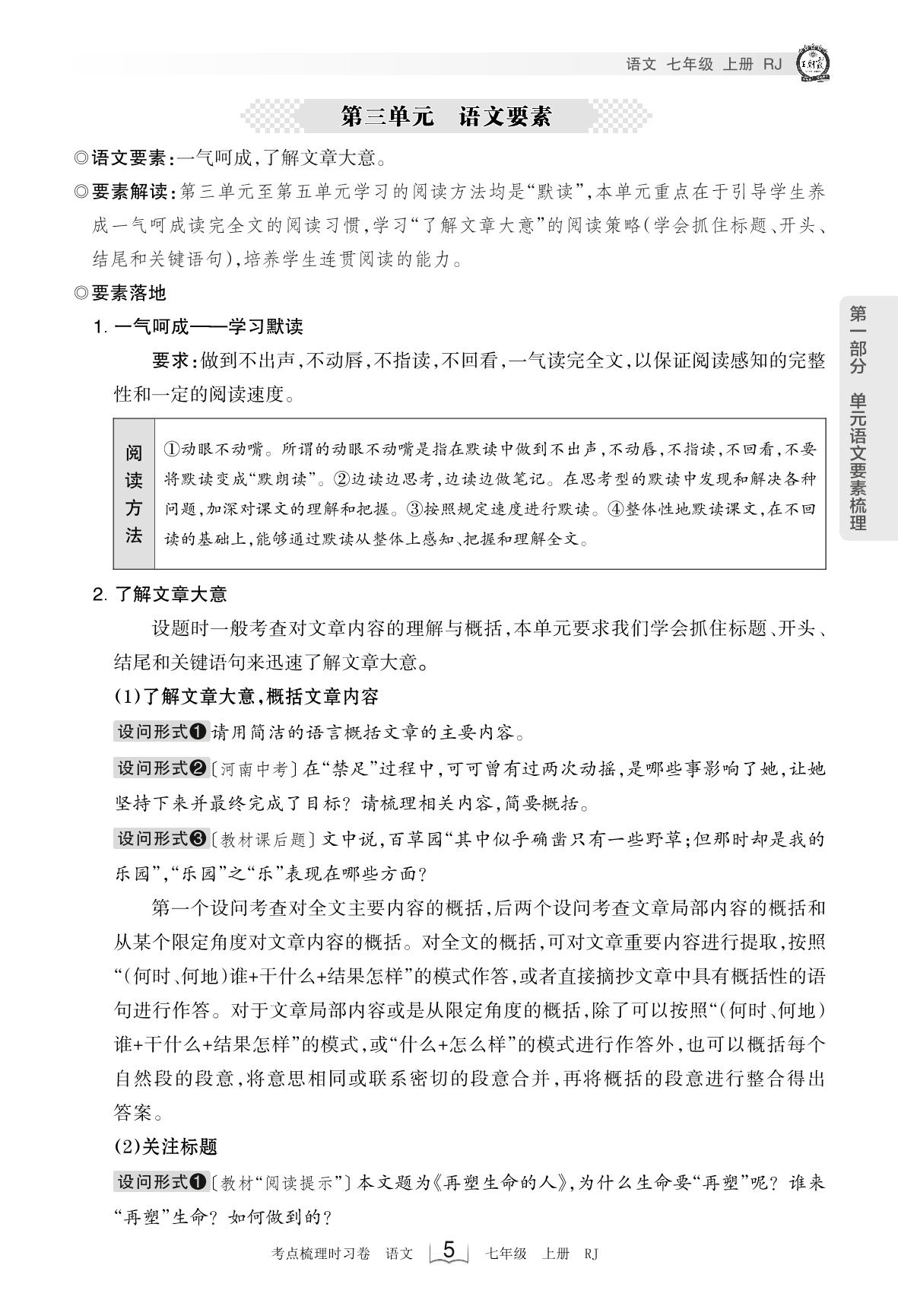 2023上册七年级语文人教版 考点梳理手册——第三单元 语文要素