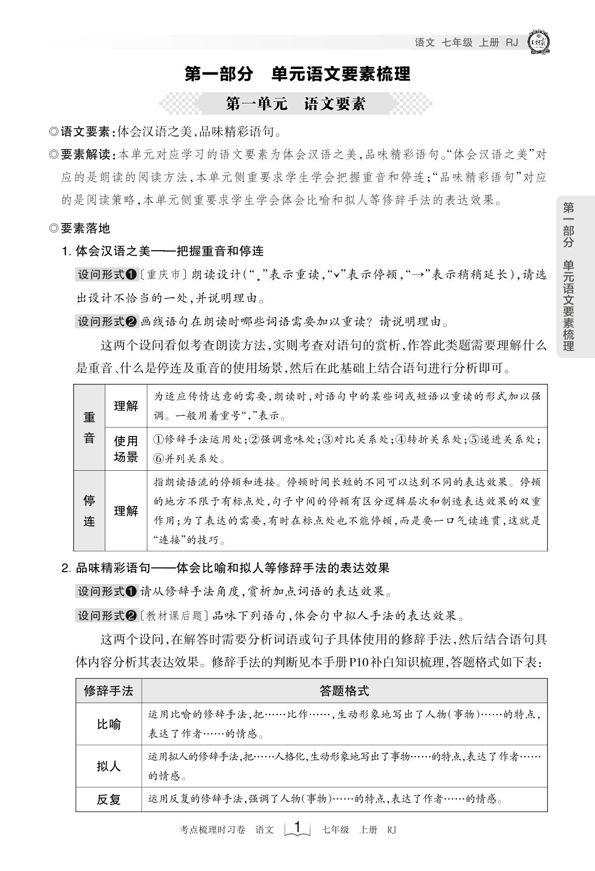 2023上册七年级语文人教版 考点梳理手册——第一单元 语文要素