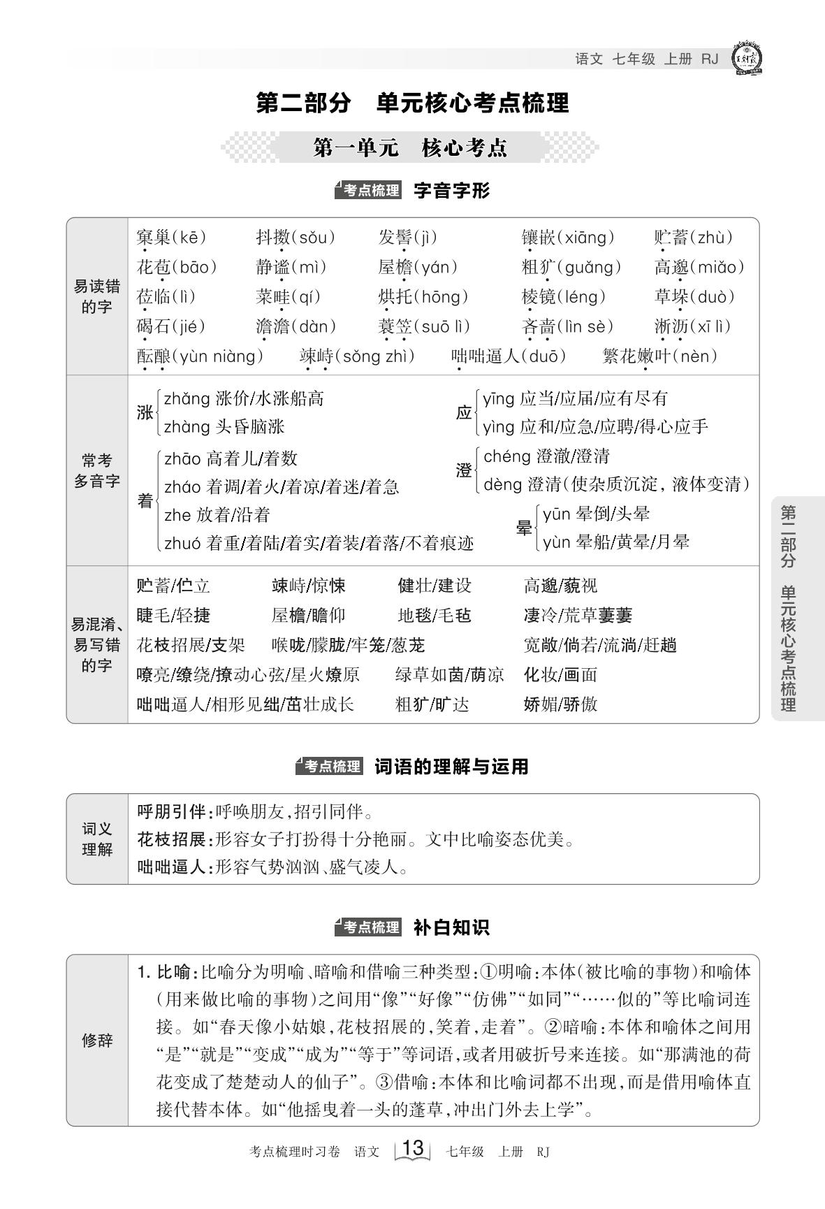 2023上册七年级语文人教版 考点梳理手册——第一单元 核心考点