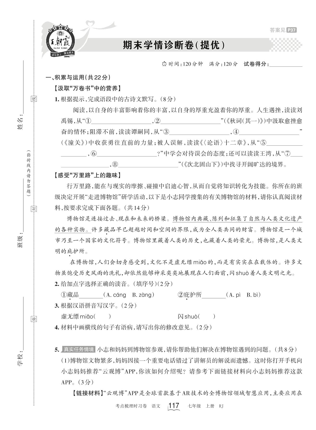 2023上册七年级语文人教版 期末学情诊断卷(提优)