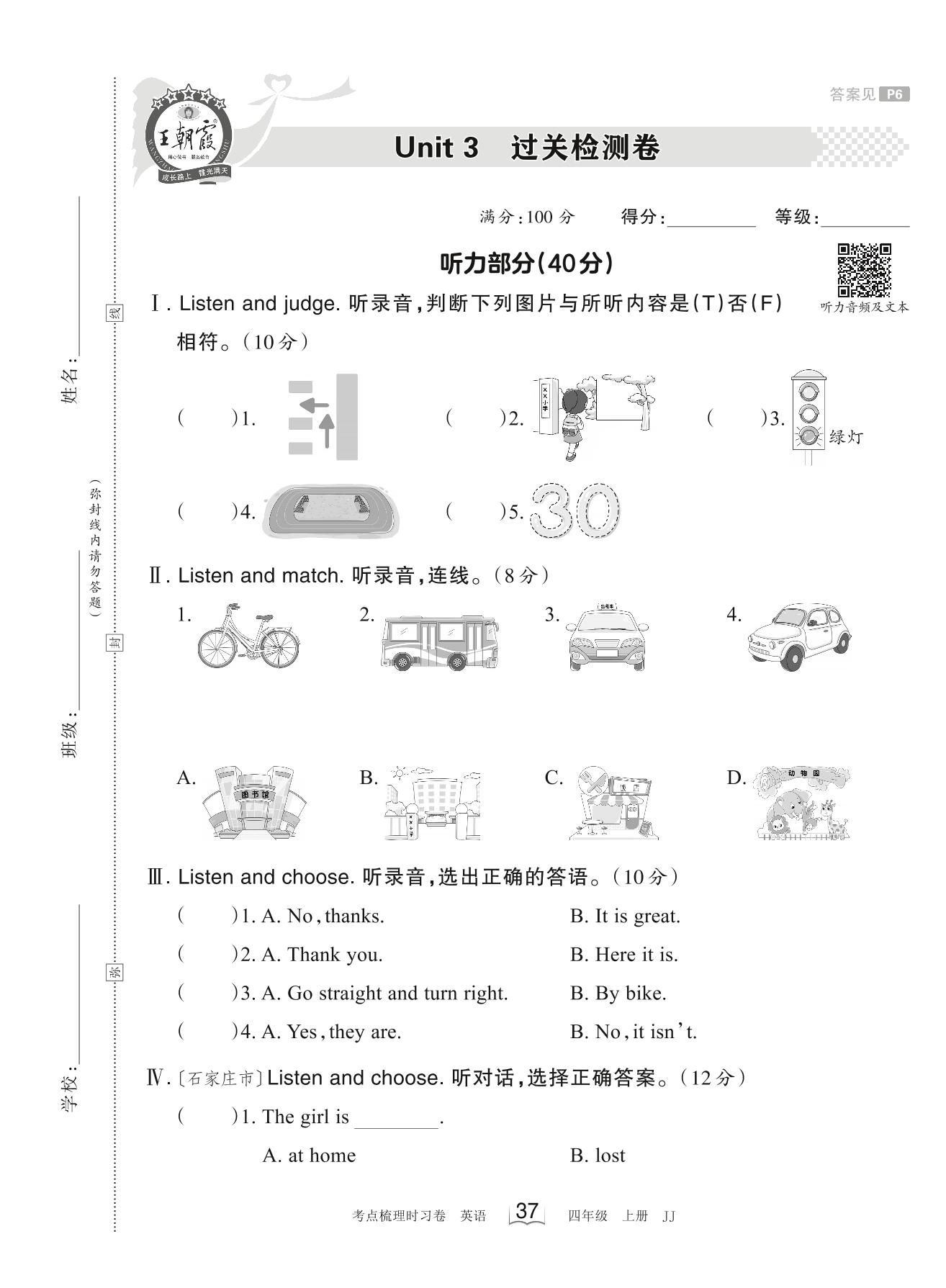 2023上册四年级英语冀教版 Unit 3 过关检测卷