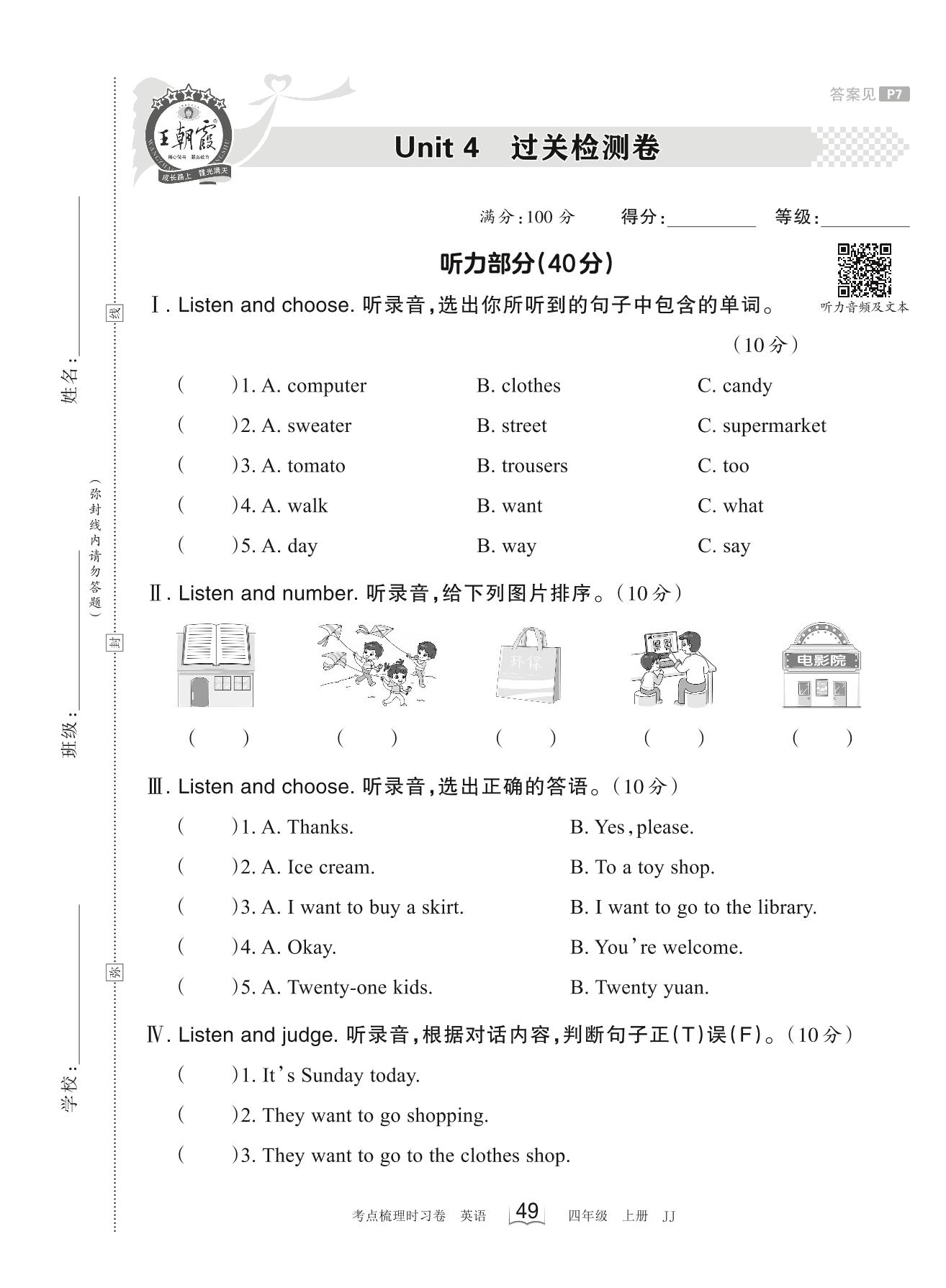 四年级英语冀教版上册单元卷