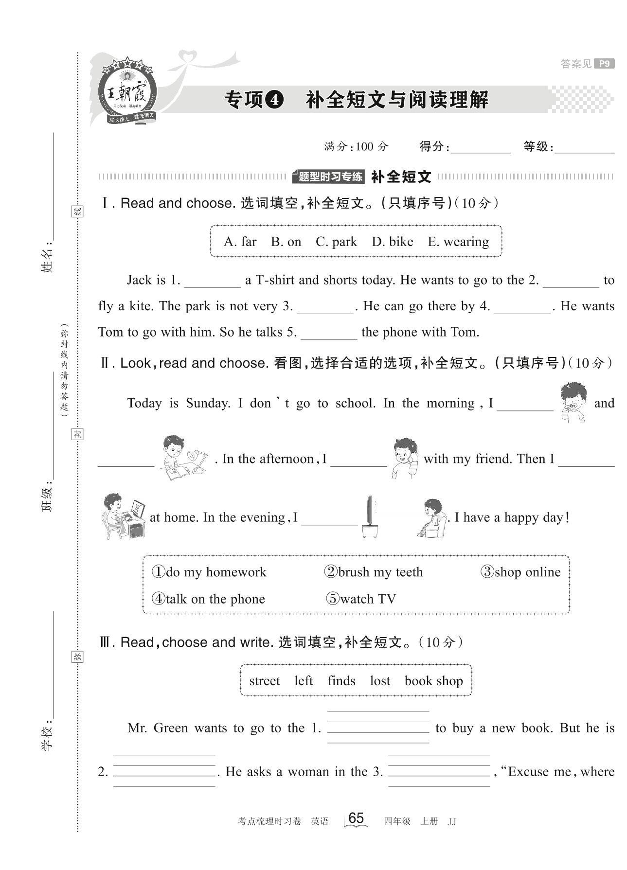 2023上册四年级英语冀教版 专项4 补全短文与阅读理解