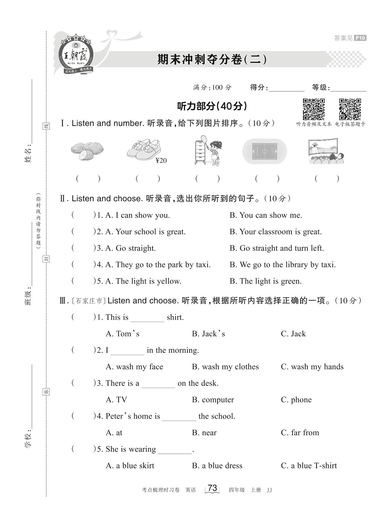 2023上册四年级英语冀教版 期末冲刺夺分卷(二)
