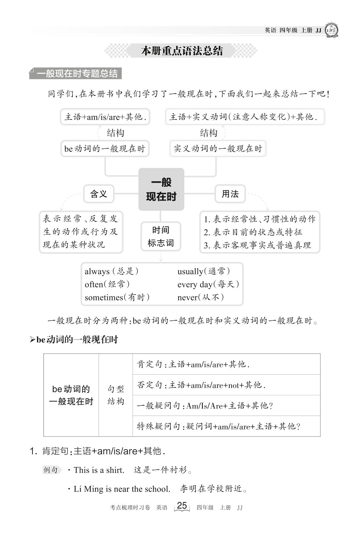 2023上册四年级英语冀教版 考点梳理手册——本册重点语法总结