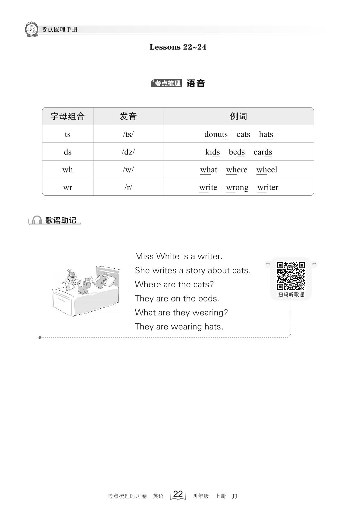 2023上册四年级英语冀教版 考点梳理手册——Unit 4 Lessons 22~24