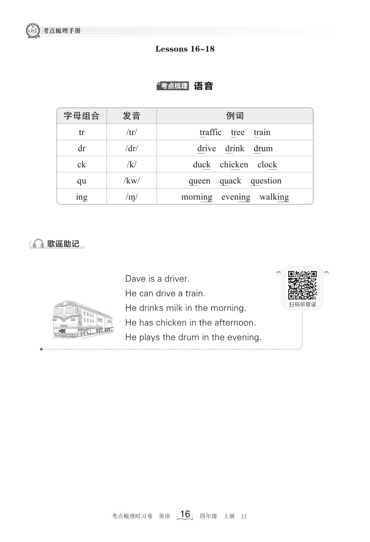 2023上册四年级英语冀教版 考点梳理手册——Unit 3 Lessons 16~18