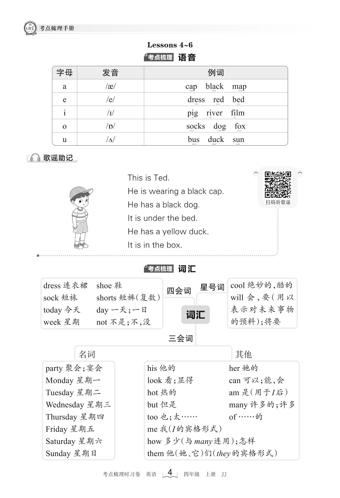 2023上册四年级英语冀教版 考点梳理手册——Unit 1 Lessons 4~6
