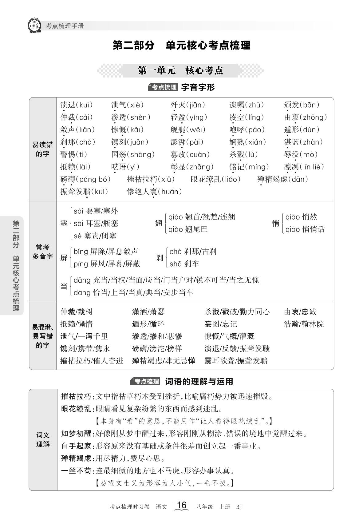 2023上册八年级语文人教版 考点梳理手册——第一单元 核心考点