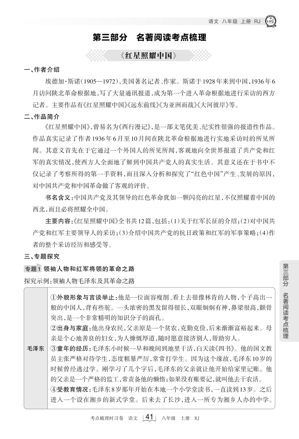 2023上册八年级语文人教版 考点梳理手册——名著阅读《红星照耀中国》
