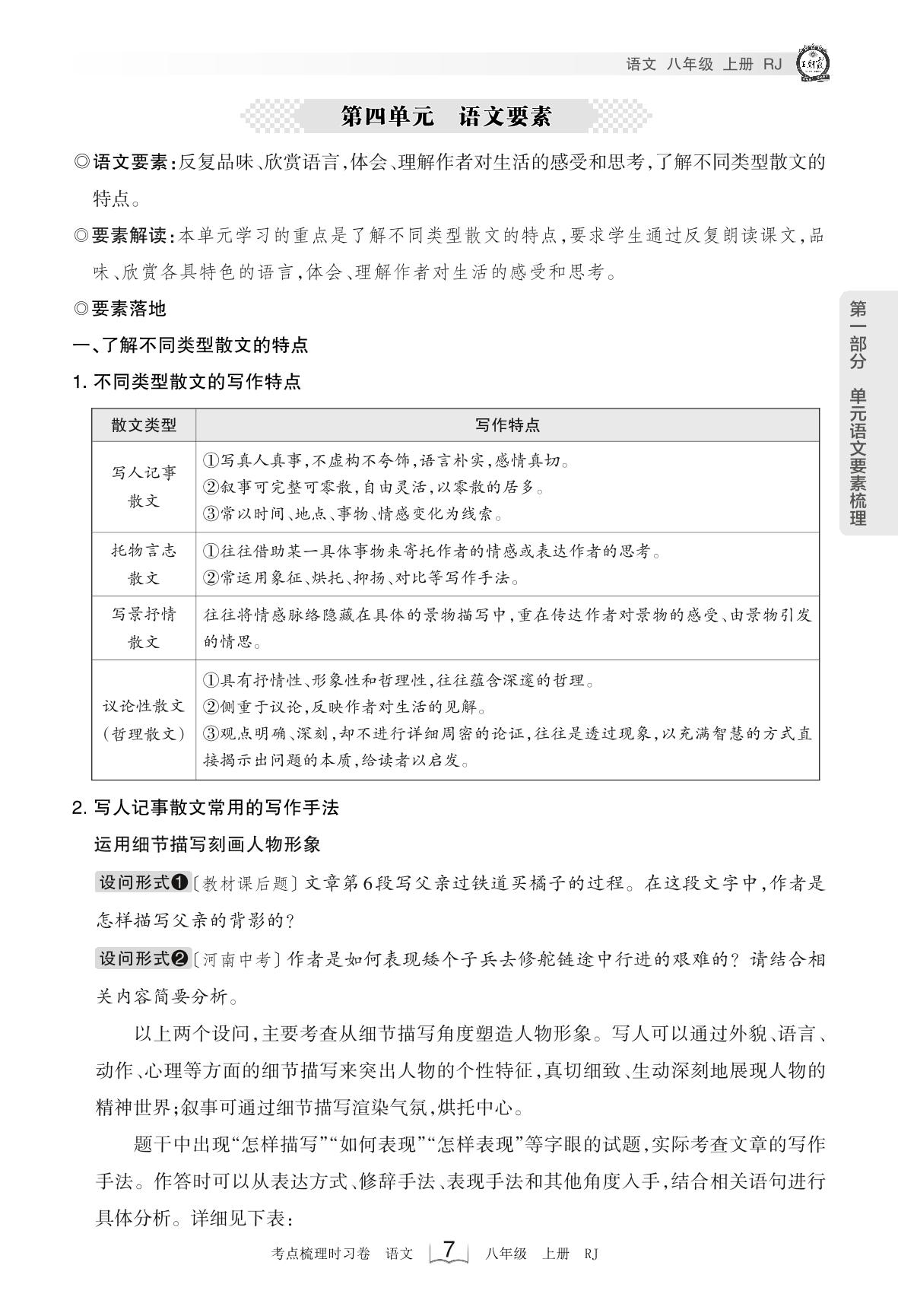 2023上册八年级语文人教版 考点梳理手册——第四单元 语文要素