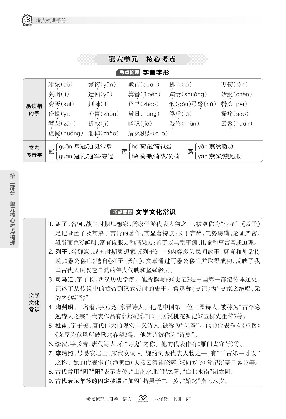 2023上册八年级语文人教版 考点梳理手册——第六单元 核心考点