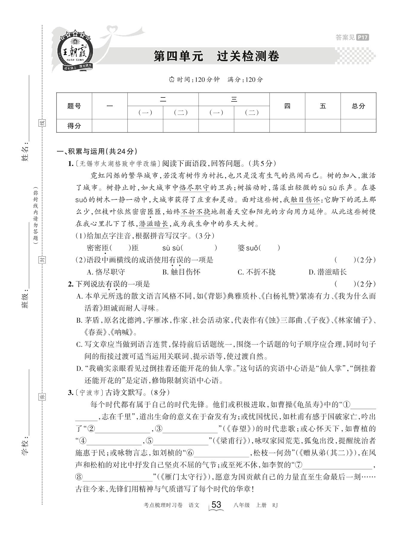 八年级语文人教版上册单元卷