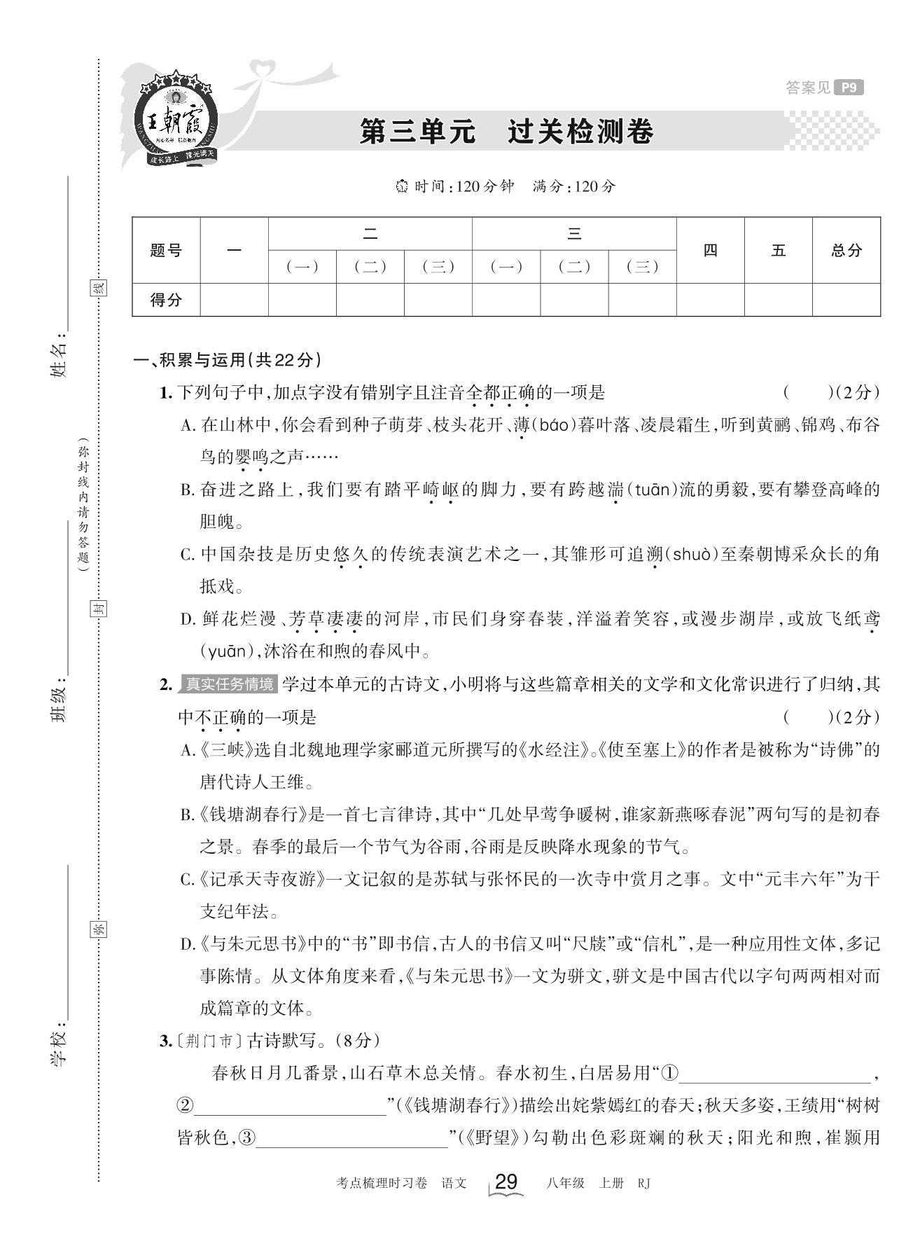 2023上册八年级语文人教版 第三单元 过关检测卷