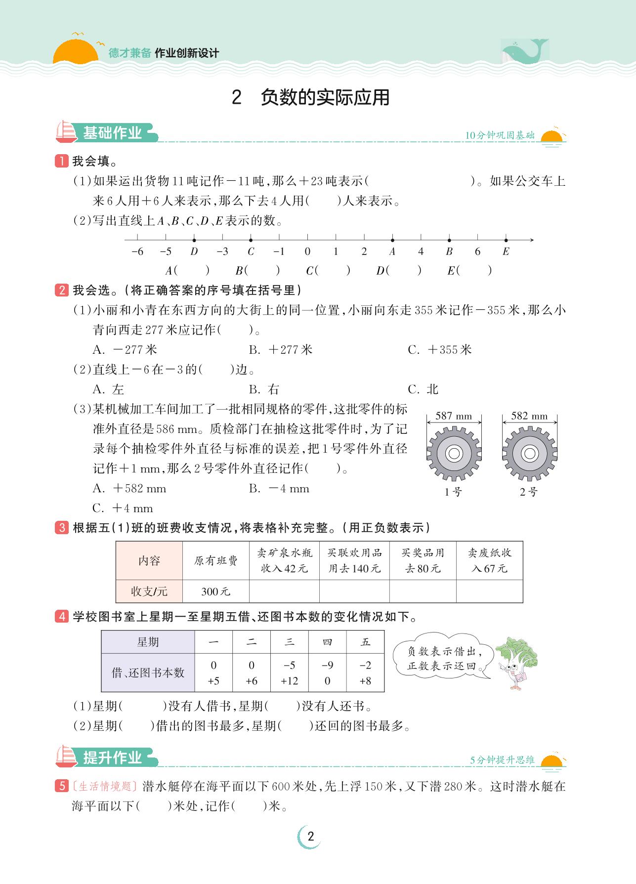 2023上册五年级数学苏教版 第一单元 负数的初步认识——2 负数的实际应用