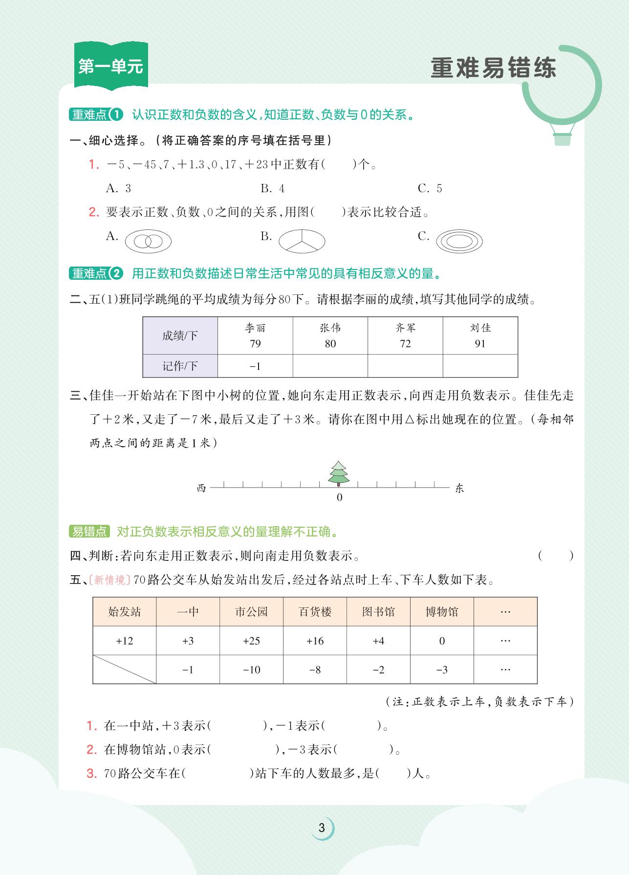 2023上册五年级数学苏教版 第一单元重难易错练