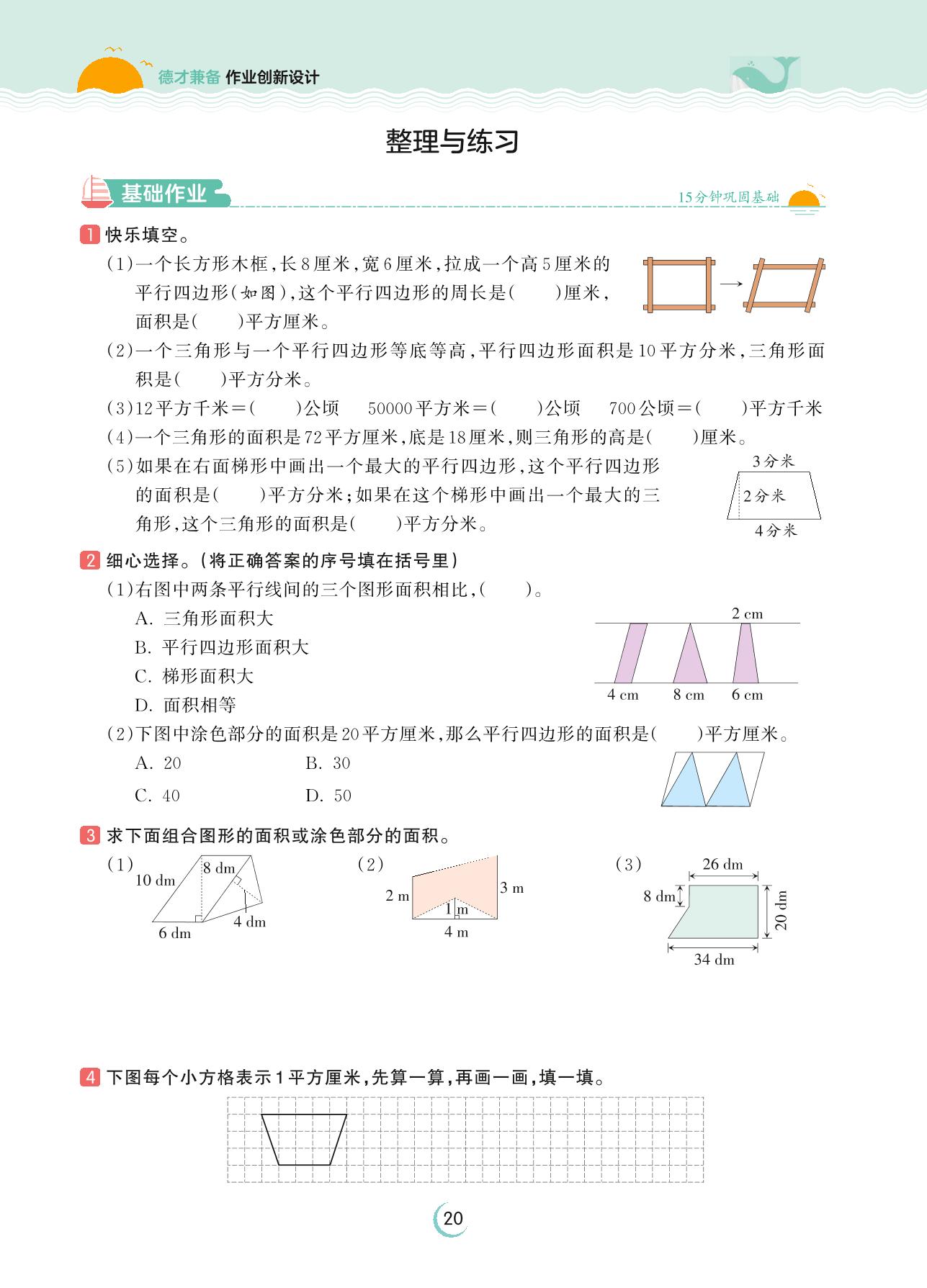 2023上册五年级数学苏教版 第二单元 多边形的面积——整理与练习