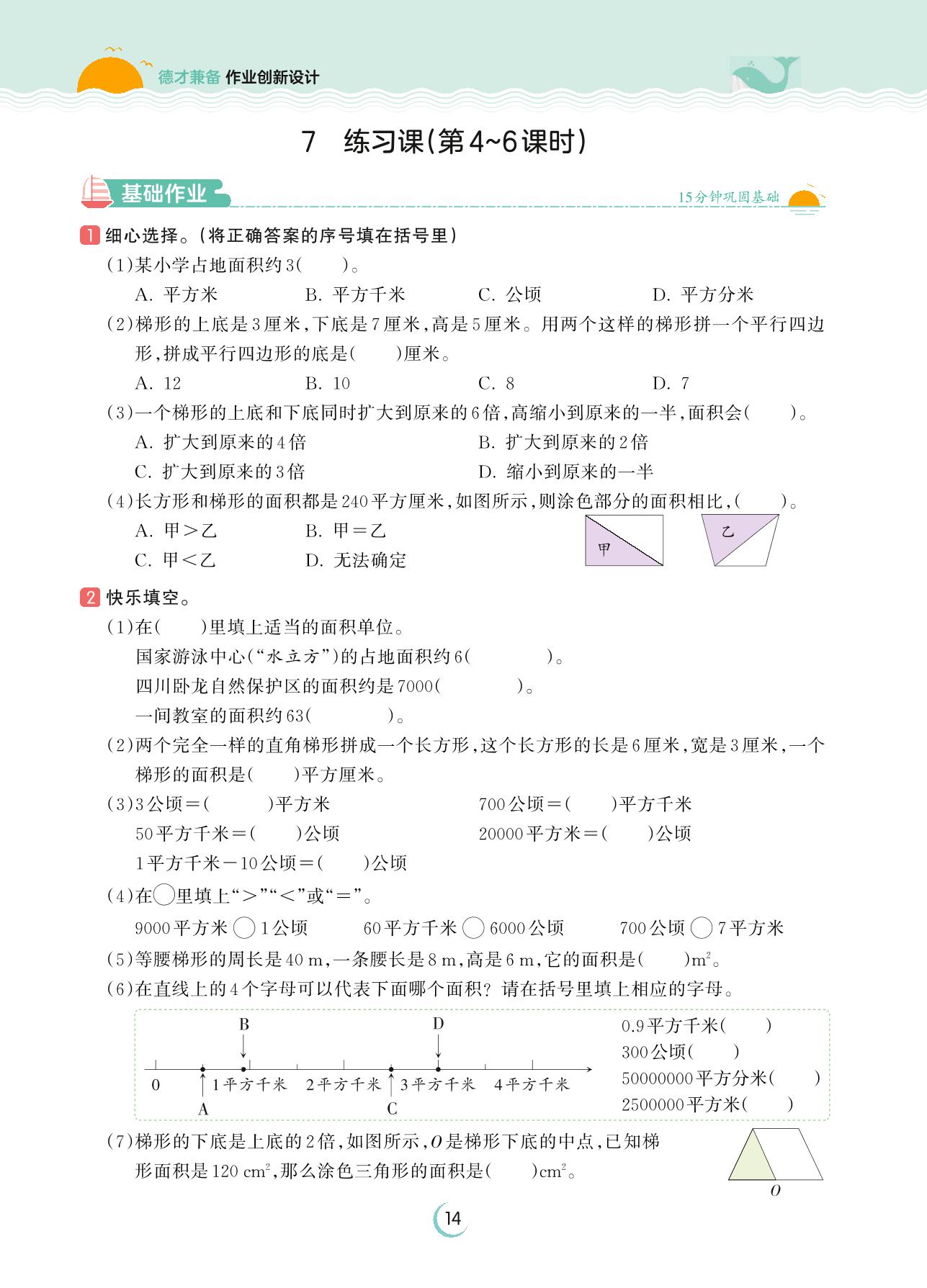 2023上册五年级数学苏教版 第二单元 多边形的面积——7 练习课(第4~6课时)
