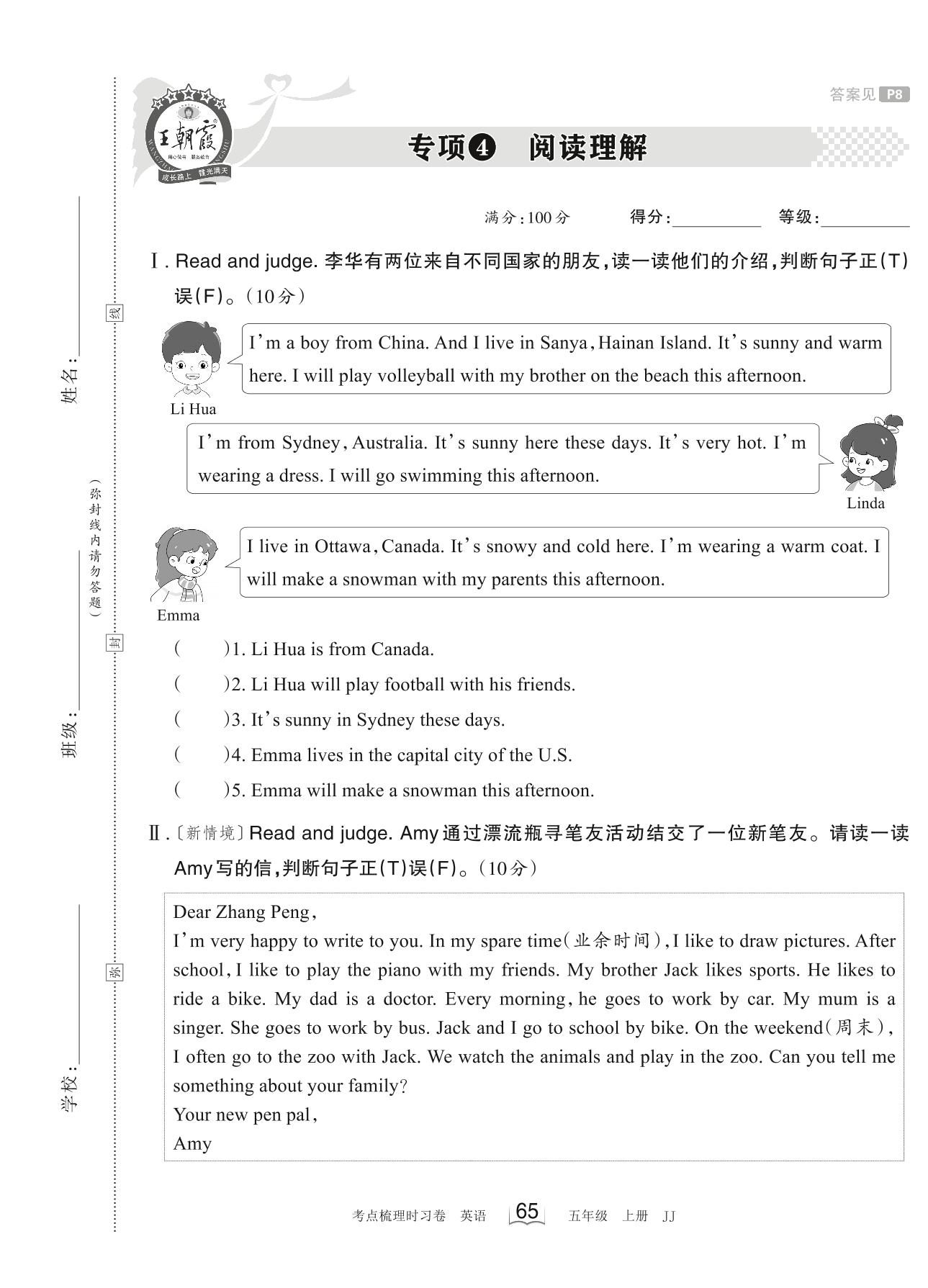 2023上册五年级英语冀教版 专项4 阅读理解