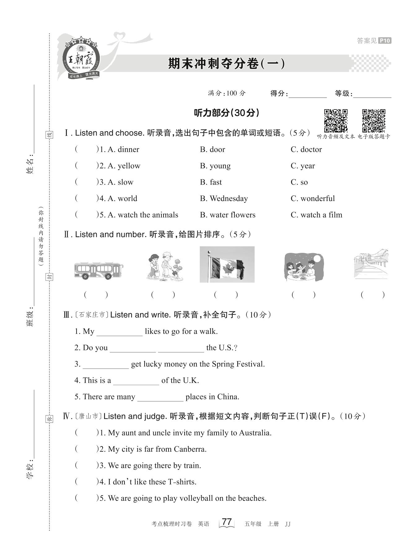 2023上册五年级英语冀教版 期末冲刺夺分卷(一)