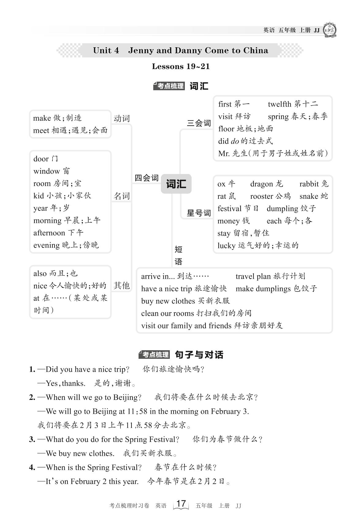 2023上册五年级英语冀教版 考点梳理手册——Unit 4 Lessons 19~21