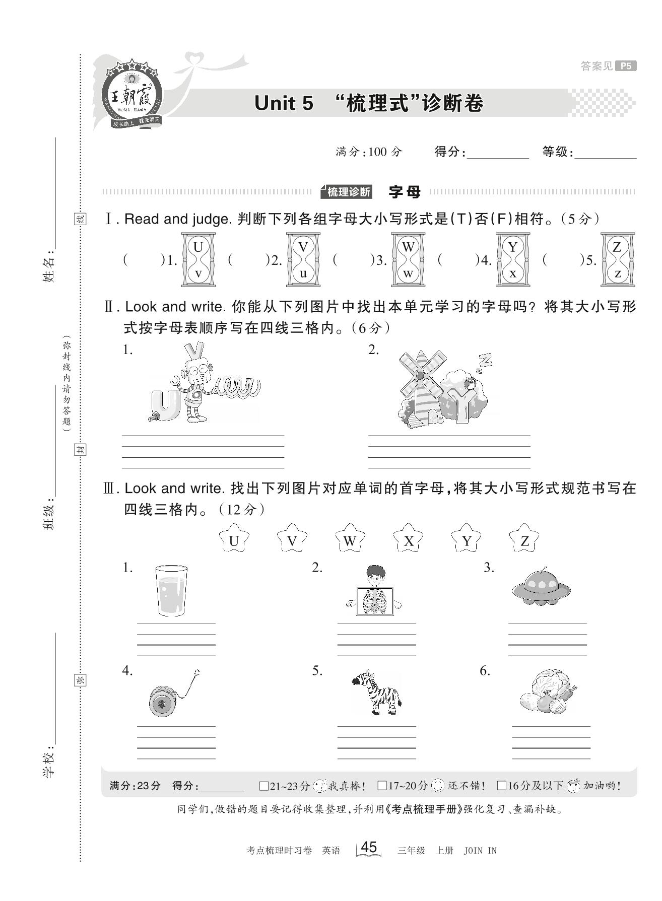 2023上册三年级英语剑桥版 Unit 5 “梳理式”诊断卷