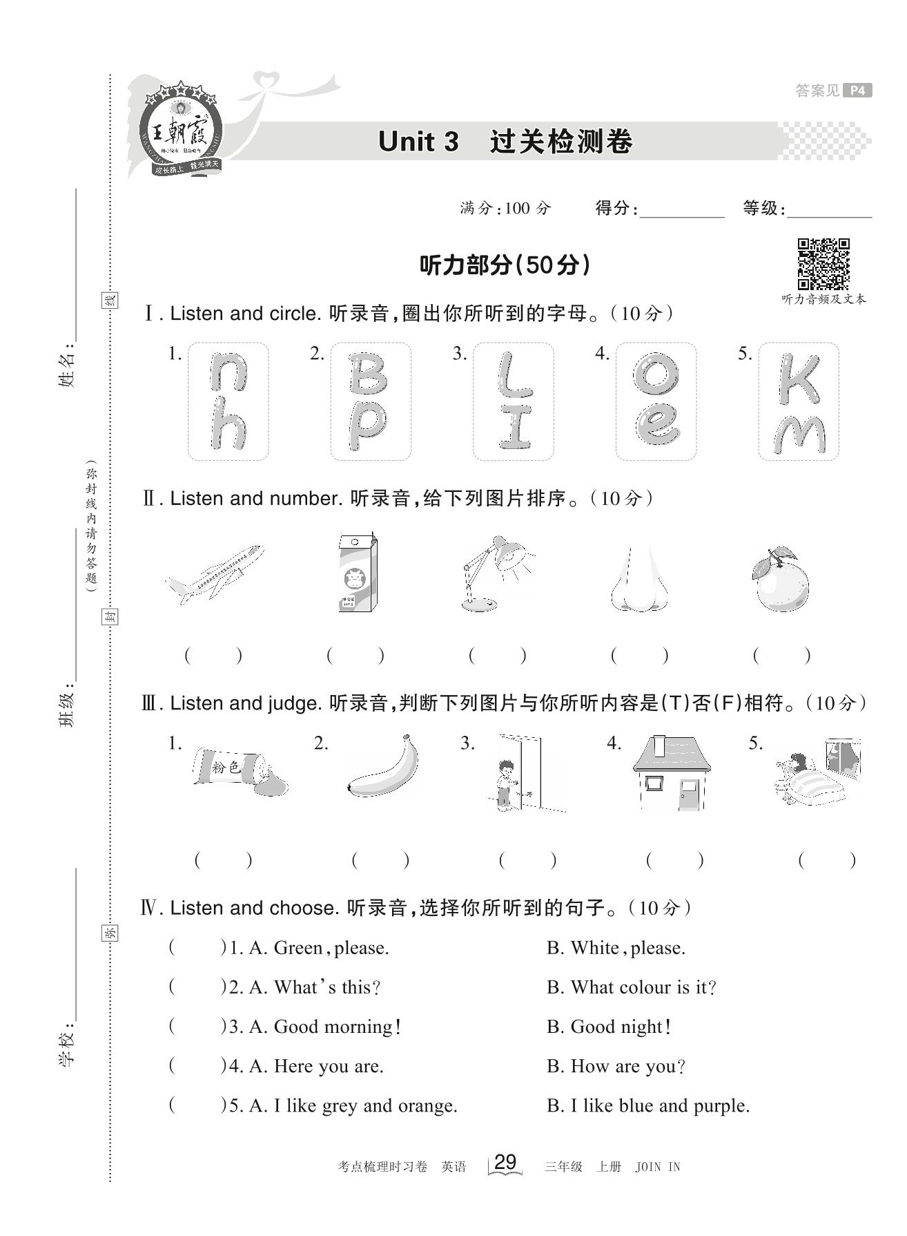 2023上册三年级英语剑桥版 Unit 3 过关检测卷