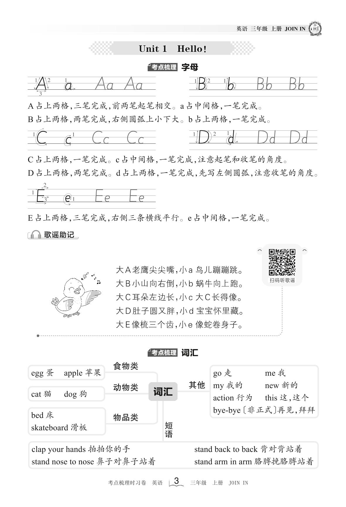 2023上册三年级英语剑桥版 考点梳理手册——Unit 1 Hello!