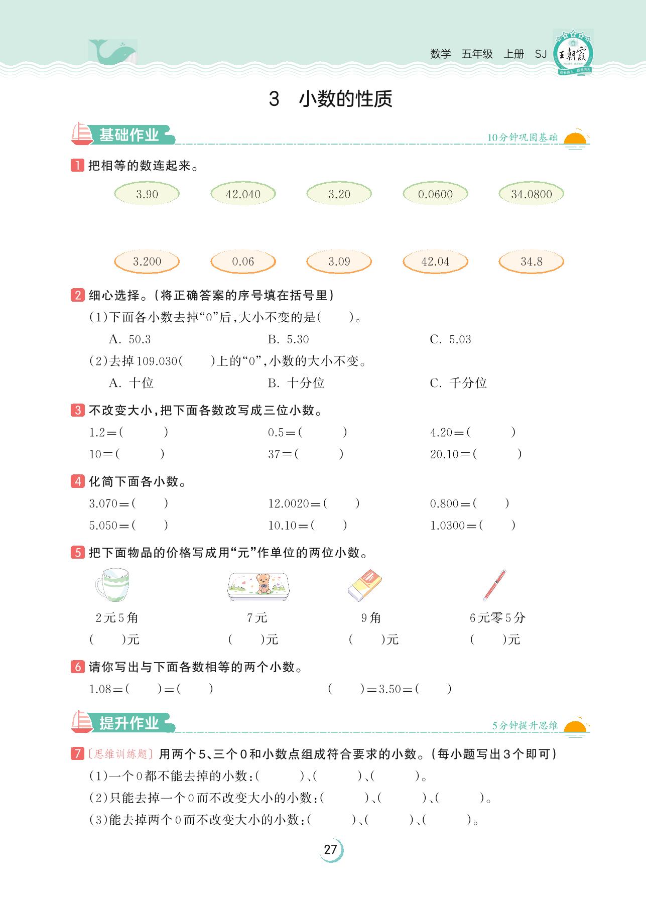 2023上册五年级数学苏教版 第三单元 小数的意义和性质——3 小数的性质