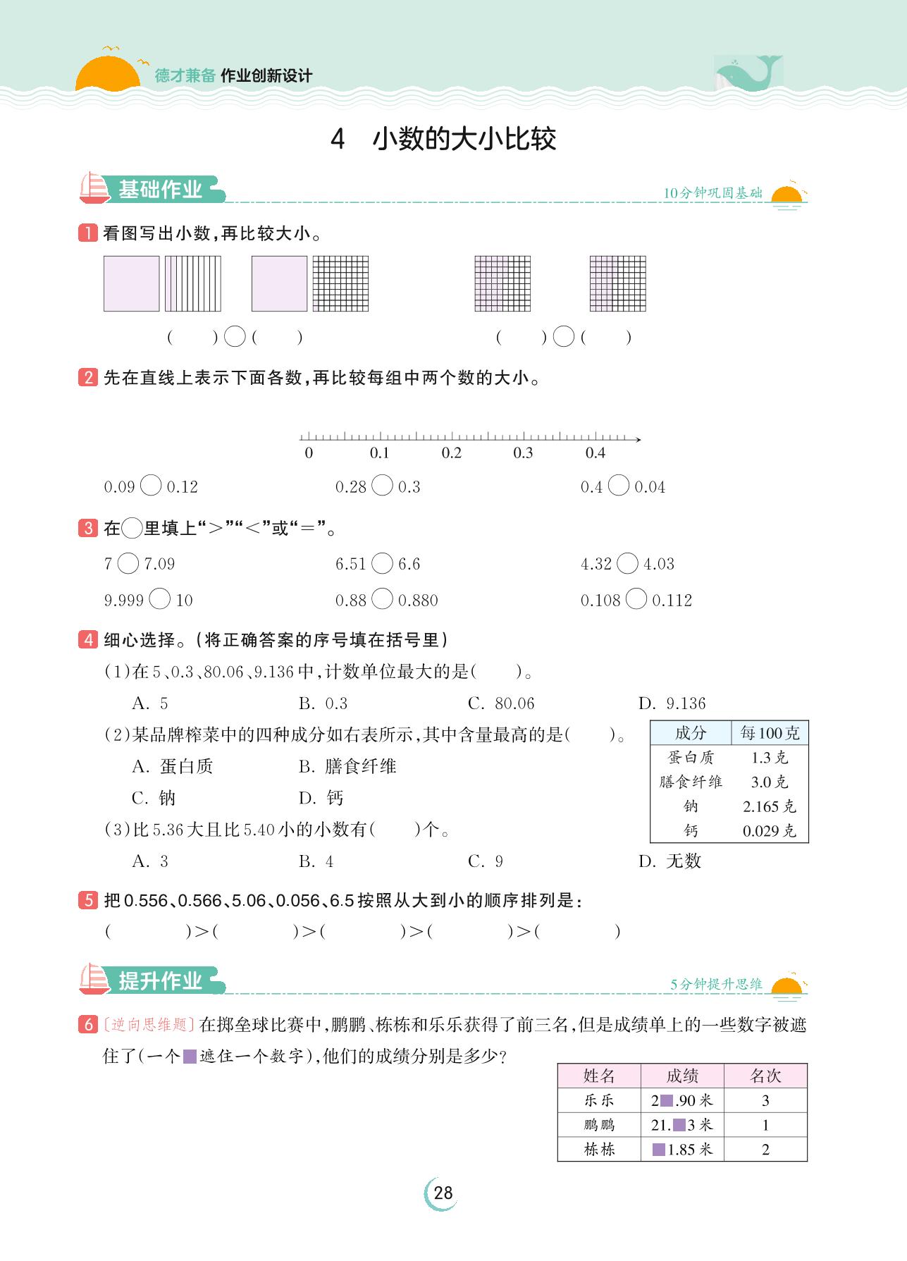2023上册五年级数学苏教版 第三单元 小数的意义和性质——4 小数的大小比较