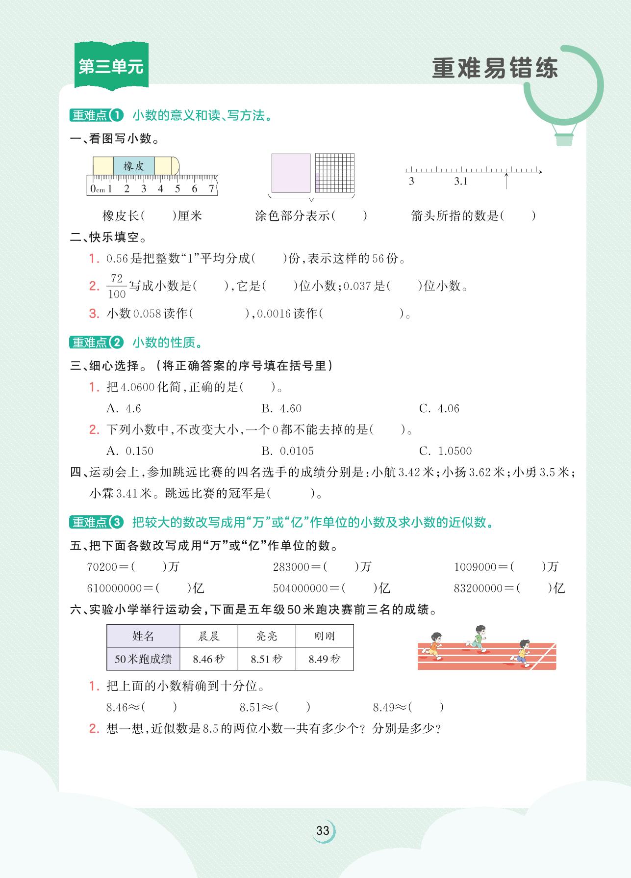 2023上册五年级数学苏教版 第三单元重难易错练