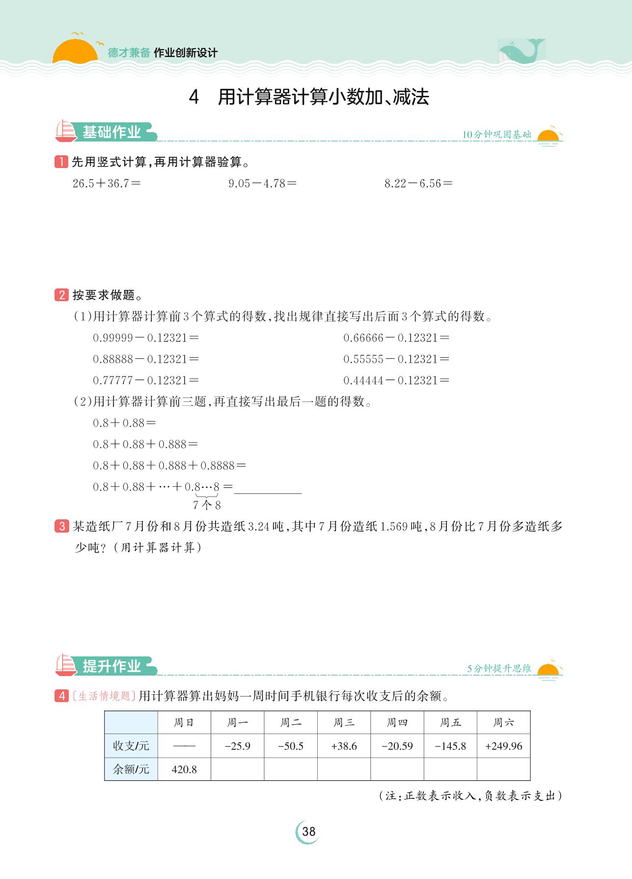 2023上册五年级数学苏教版 第四单元 小数加法和减法——4 用计算器计算小数加、减法