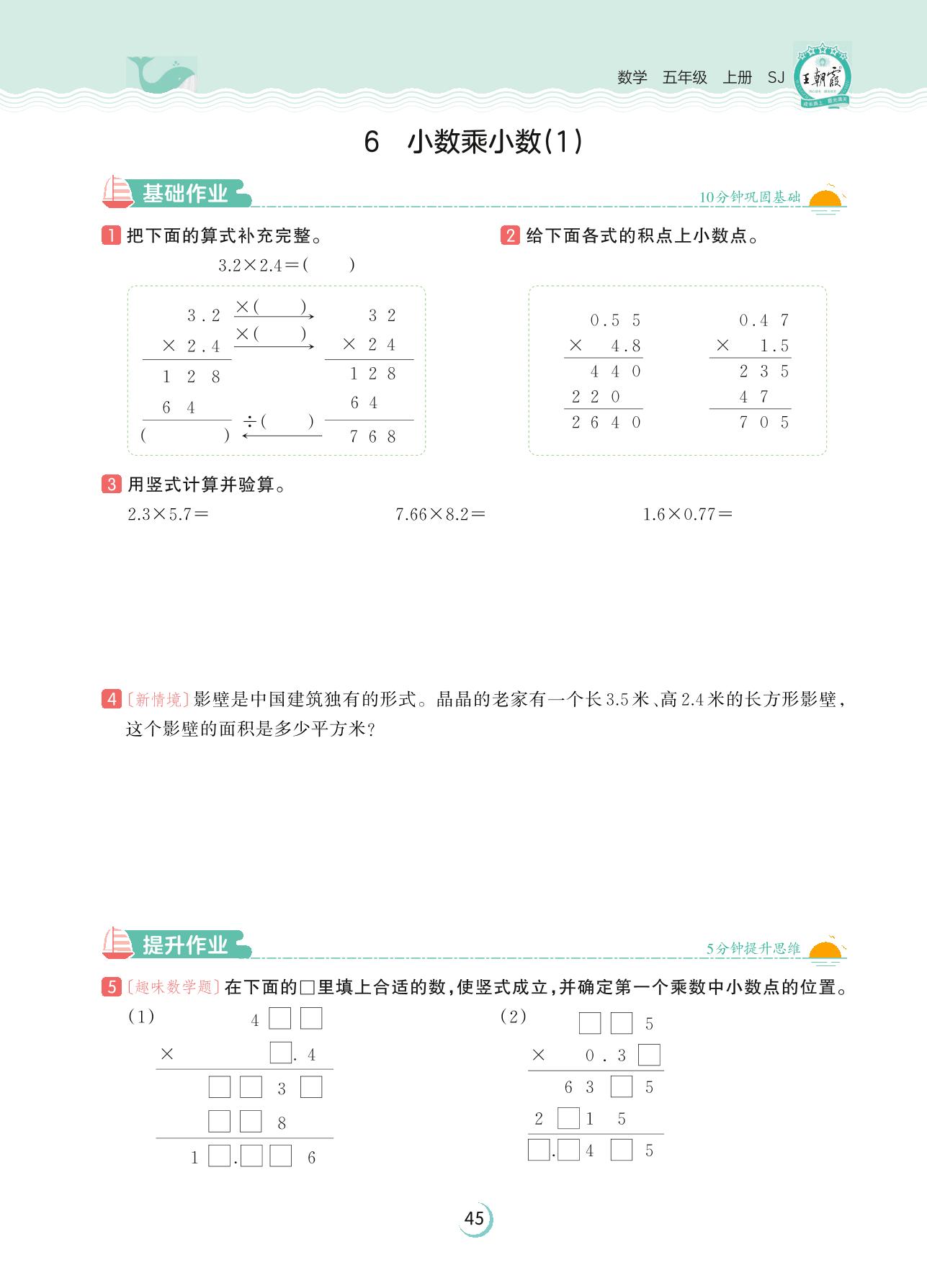 2023上册五年级数学苏教版 第五单元 小数乘法和除法——6 小数乘小数(1)