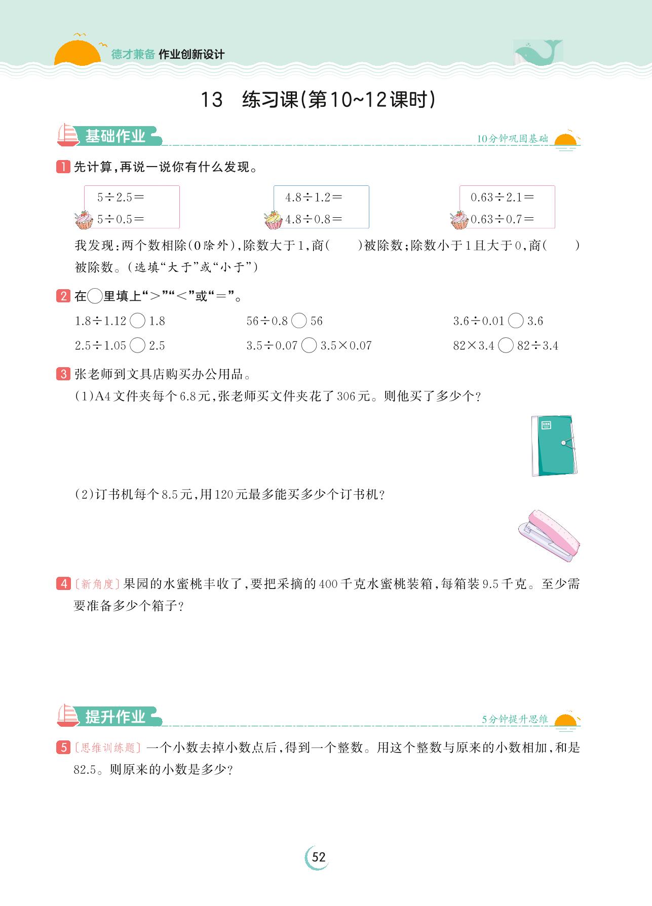 2023上册五年级数学苏教版 第五单元 小数乘法和除法——13 练习课(第10~12课时)