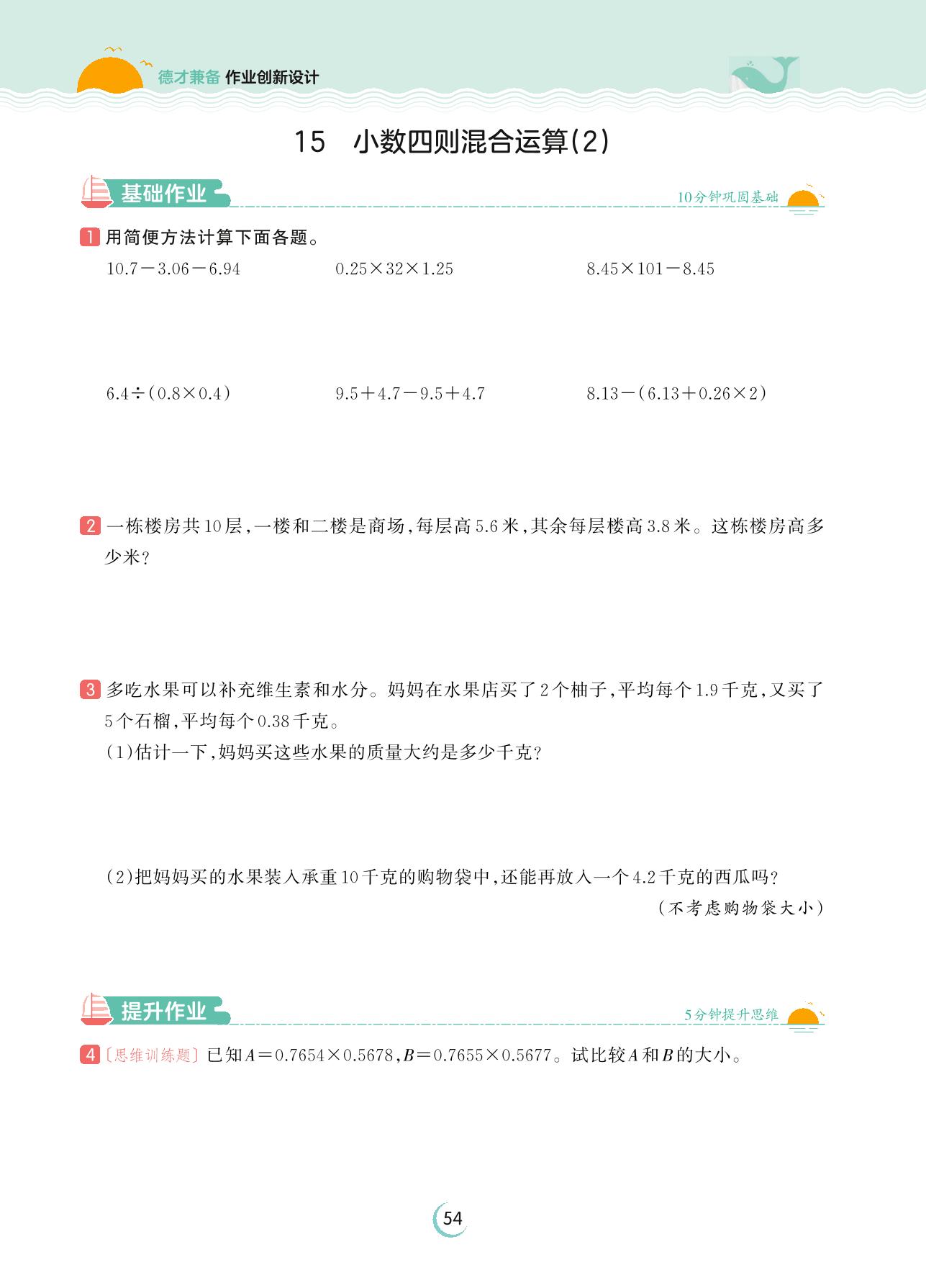 2023上册五年级数学苏教版 第五单元 小数乘法和除法——15 小数四则混合运算(2)