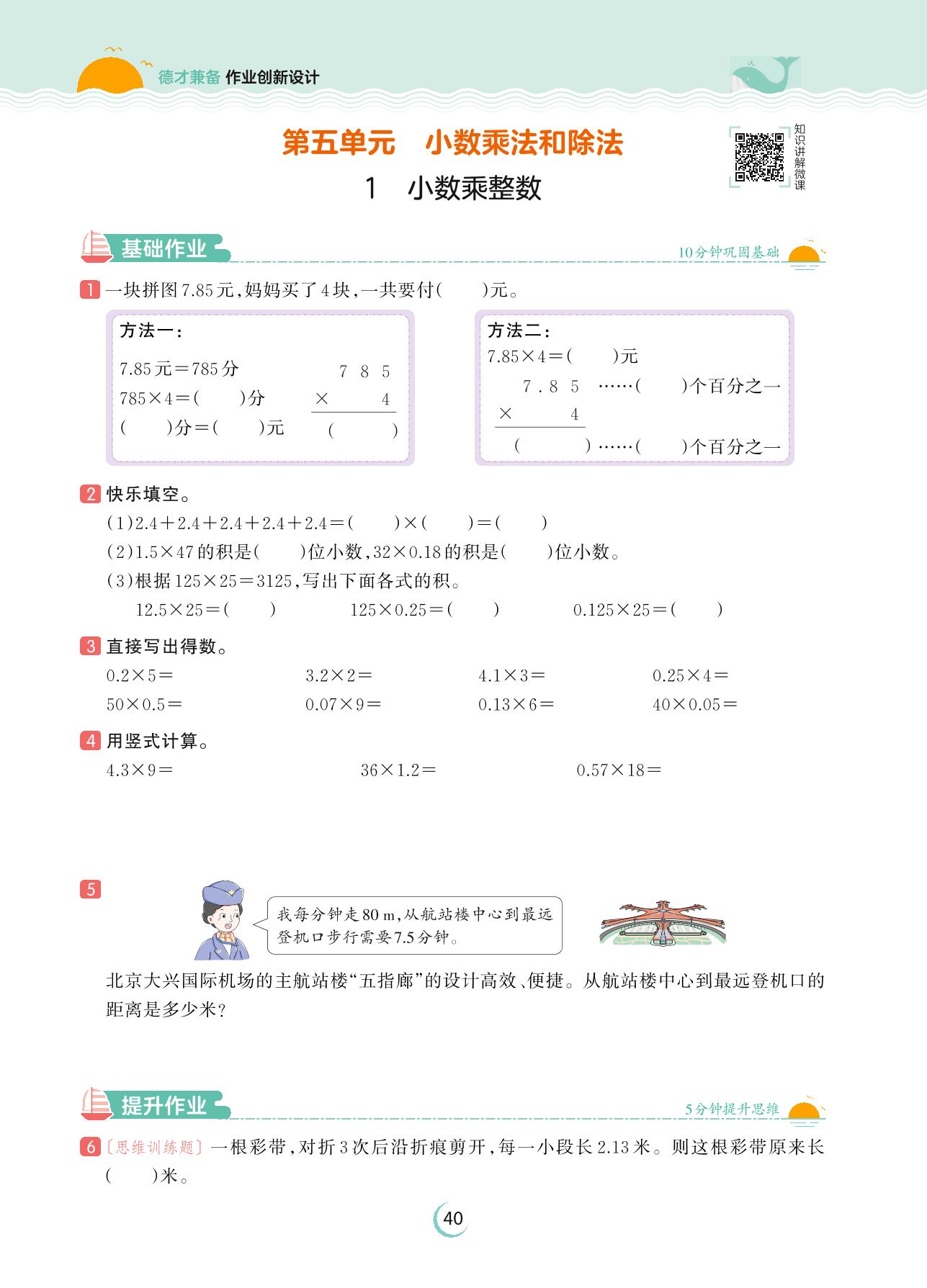 2023上册五年级数学苏教版 第五单元 小数乘法和除法——1 小数乘整数