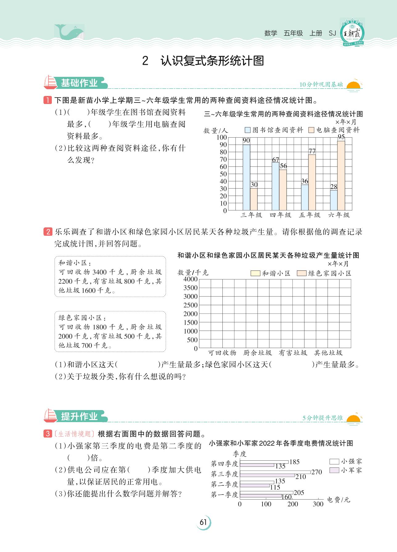 2023上册五年级数学苏教版 第六单元 统计表和条形统计图(二)——2 认识复式条形统计图